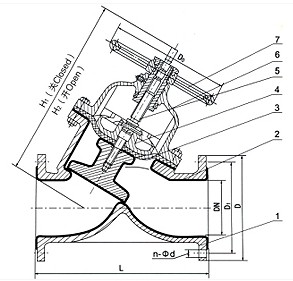 部件列表: 1、阀体 2、阀体衬里 3、隔膜 4、阀瓣 5、阀杆 6、阀盖 7、手轮 设计与制造:GB122239